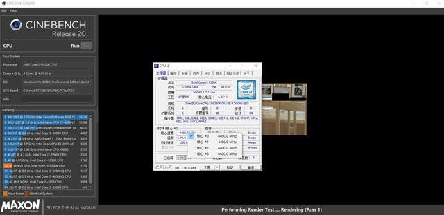 而在接下來我們用Cinebench R20跑分看一下酷睿i3-9350K超到5.0GHz后到底提升了多少。