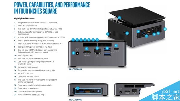日前,Intel正式更新了旗下NUC系列產品線,全線搭載了第七代Kaby Lake酷睿處理器,包括兩款i3機型(NUC7i3BNK、NUC7i3BNH)、兩款i5機型(NUC7i5BNK、NUC7i5BNH)以及一款i7機型(NUC7i7BNH)。