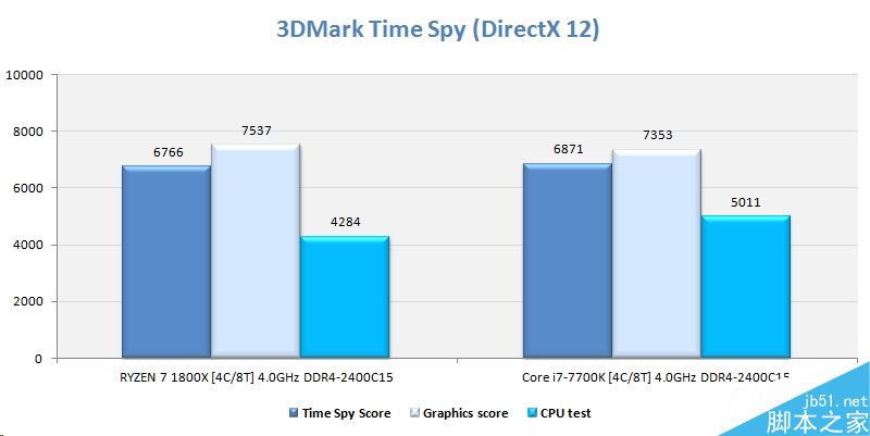 3DMark Time Spy:Ryzen圖形性能領先,但是CPU性能落后了約12%。