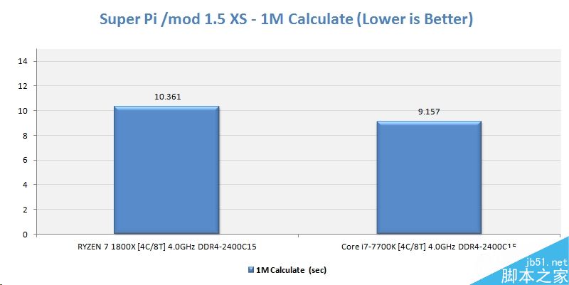 SuperPI 1M:Ryzen慢了1.2秒鐘,也就是大約11%。