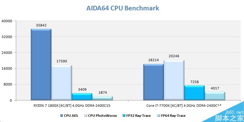 AIDA64 CPU:ASE項目上Ryzen領先了足足一倍,但其他項目依然略微落后。