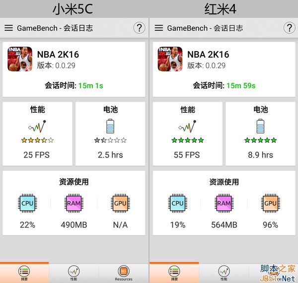 監測軟件顯示,搭載澎湃S1的小米5C運行15分鐘《NBA 2K15》的畫面平均幀數只有25FPS,畫面并不是十分流暢。不過,搭載高通驍龍625的紅米4則有著不錯的表現,平均幀數達到55 FPS,而且電池評分也遠高于小米5C。