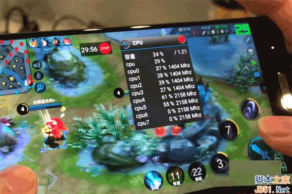 通過測試,我們發現小米5C玩《王者榮耀》還是比較輕松的,在游戲整過程中,澎湃S1的8個核心都處于工作狀態,而且沒有明顯鎖頻的現象。此外,經過30分鐘的游戲時候,小米5C發熱也不是很明顯。