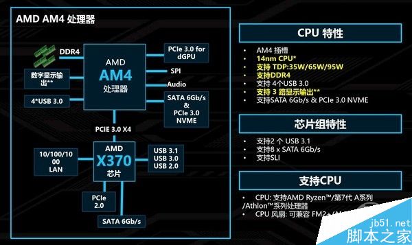 而AMD今年終于將AM3主板上原地踏步已久的990FX/990X/970 + SB 950/920(南北橋芯片組)升級到300系芯片組,并且將FM2+和AM3+的接口統一為AM4接口。目前AMD主打DIY市場的芯片組有B350和X370兩款。