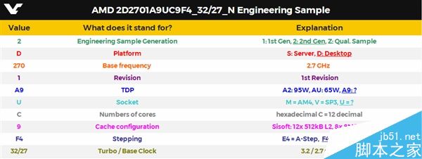 所以,這是一顆AMD的12核心24線程處理器,基準頻率2.7GHz,加速頻率3.2GHz,緩存容量、熱設計功耗不詳但后者應該高于95W,封裝接口也是新的。