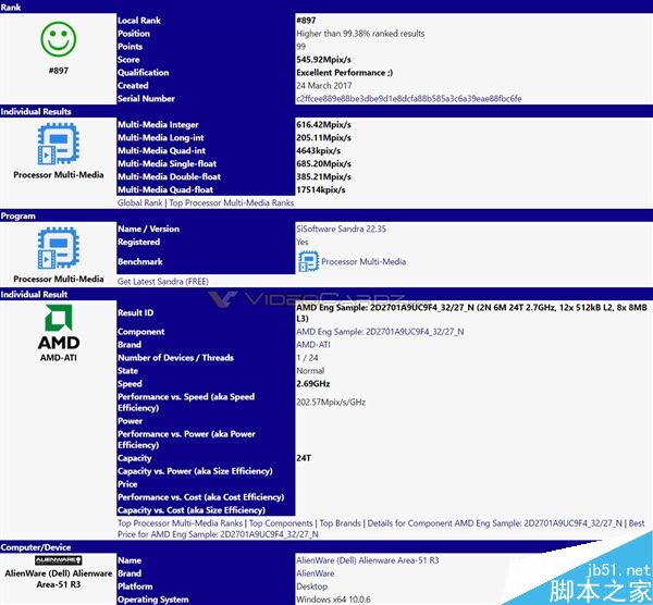 如今在Sisoft測試數據庫中(早先的Ryzen樣品幾乎都是出自這里),我們又首次看到了12核心24線程的AMD處理器。