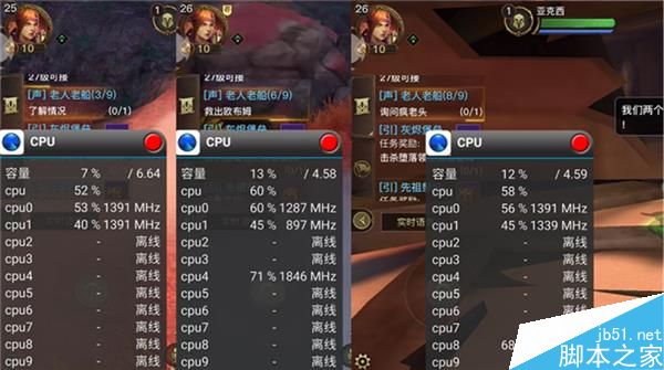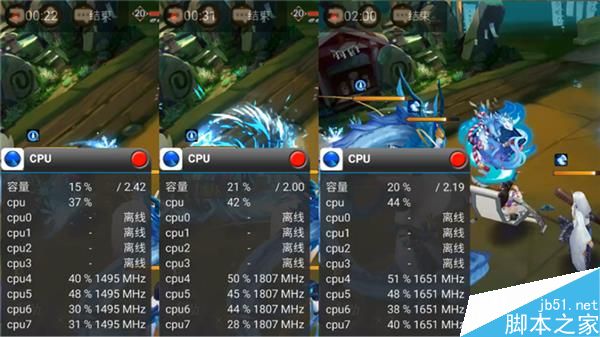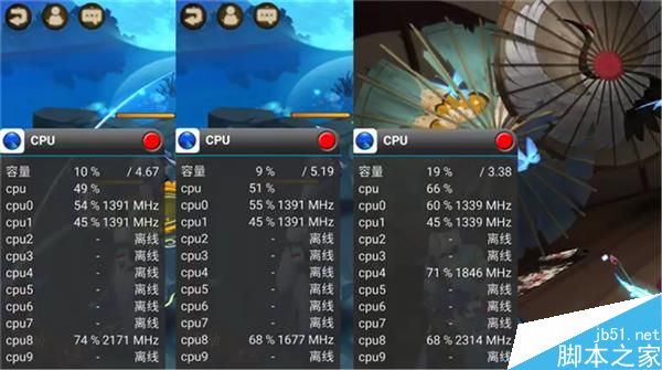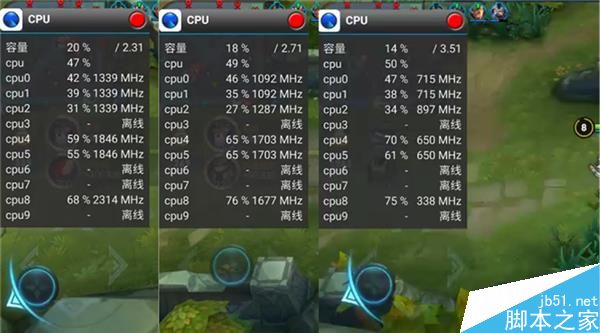 值得一提的是,Helio X20雖然關閉了一半以上核心,但是并沒有極端到“一核有難九核圍觀”,相反,在戰斗場景中核心和大核心偶爾還會分擔一下運算量。