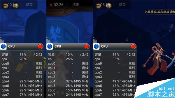 MT6750運行陰陽師時候類似Helio P10,無論是戰斗還是日常場景基本只有大核心處于工作狀態。