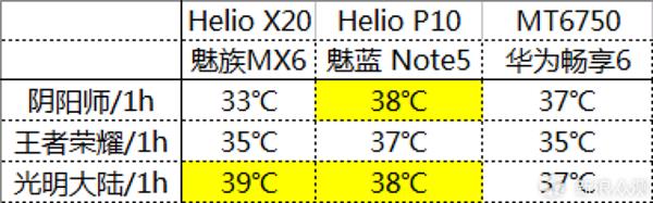 發熱上面三套平臺表現都可圈可點,MT6750分別運行完三款熱門網游之后都沒有出現超過38℃。Helio P10有兩款游戲剛好踩線。Helio X20只有一款游戲超標,另外兩款游戲溫度控制得十分好。