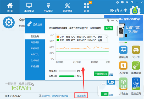 最后,如果您的電腦經常出現莫名其妙的自動關機或者自動重啟等問題,可以使用驅動人生的溫度監控功能查看一下是不是電腦某硬件溫度出了問題。