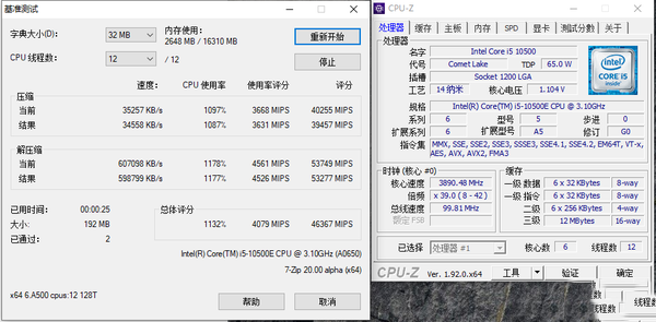 CPU:英特爾酷睿 i5-10500E (3.1GHz)
