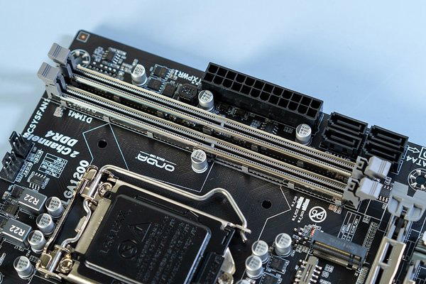 昂達B460SD4提供兩條標準的DDR4內存插槽,均采用金屬包裹保證強度,PCIe X16同樣使用了金屬外殼提高強度。主板的南橋在“ONDA”LOGO的散熱片下。由于主板采用極簡設計風格,主板上沒有內置RGB燈珠,喜歡RGB燈效的用戶會稍有失望。