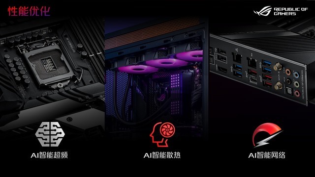 華碩ROG MAXIMUS XII EXTREME在內的ROG系列這次加入了AI智能優(yōu)化技術,可以看做上代的AI智能超頻超級加倍板,不僅包括了AI智能超頻還額外加入了AI智能散熱以及AI智能網(wǎng)絡。