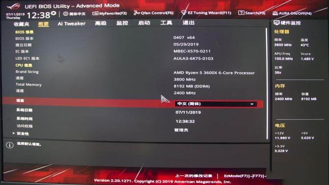 開機后首先當然進入BIOS界面看一看,這代BIOS并無大更新,但針對第三代Ryzen有加入不少功能。首先概要頁面可查看電腦基本信息。