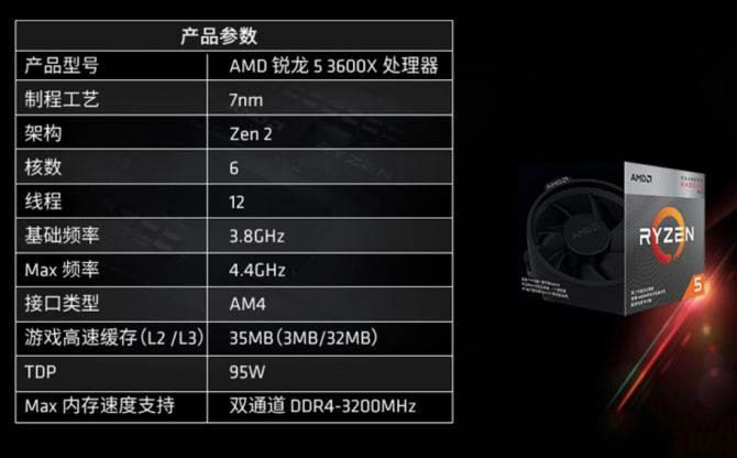 銳龍5 3600X官方自帶散熱器,散熱鰭片用料充足,風扇也相當靜音,這點比英特爾良心很多,只是3600X的散熱風扇沒有RGB燈,有條件的玩家可以換套支持神光同步的水冷。