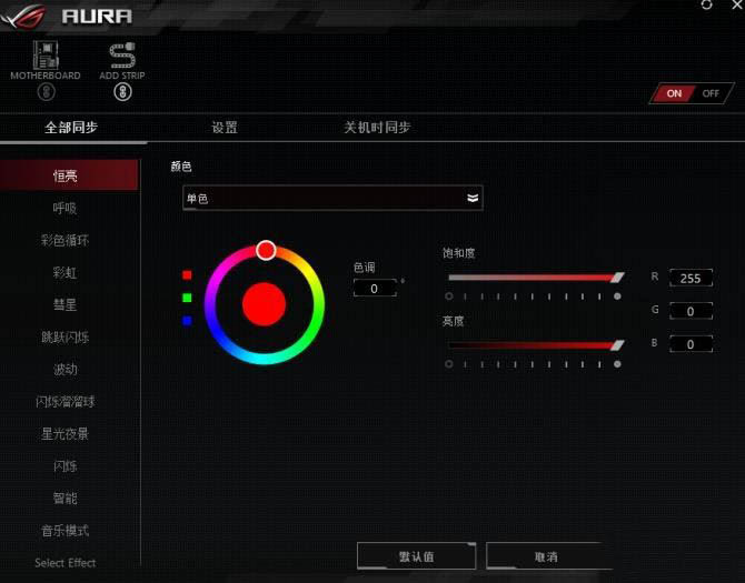 AURA的燈效設定軟件相信玩家們就一點也不陌生了,AURA中預設的燈效種類很多,連接了AURA神光同步的硬件后就可以在AURA軟件中統一調整了,你可以將所有硬件統一燈效也可以分別單獨設定。