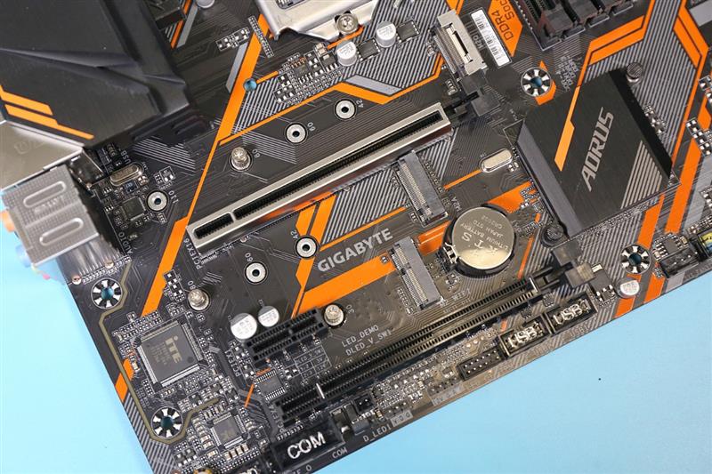 作為一塊小板,B365M Aorus Elite的擴展插槽也非常之豐富,有有1個PCI-E 3.0x16插槽、1個PCI-E 3.0x4插槽,還有一個PCI-E 3.0x1插槽。M.2 2280與M.2 22110接口各1個。