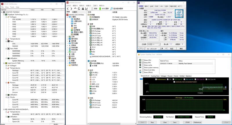 技嘉B365M Aorus Elite主板搭配i3-9350K之后在功耗方面表現相當驚人,在AIDA64 FPU的烤機測試中,即便處理器已經達到了4核心4.4GHz,但是核心功耗僅僅只有46W,離65W的TDP還有非常大的一段距離。