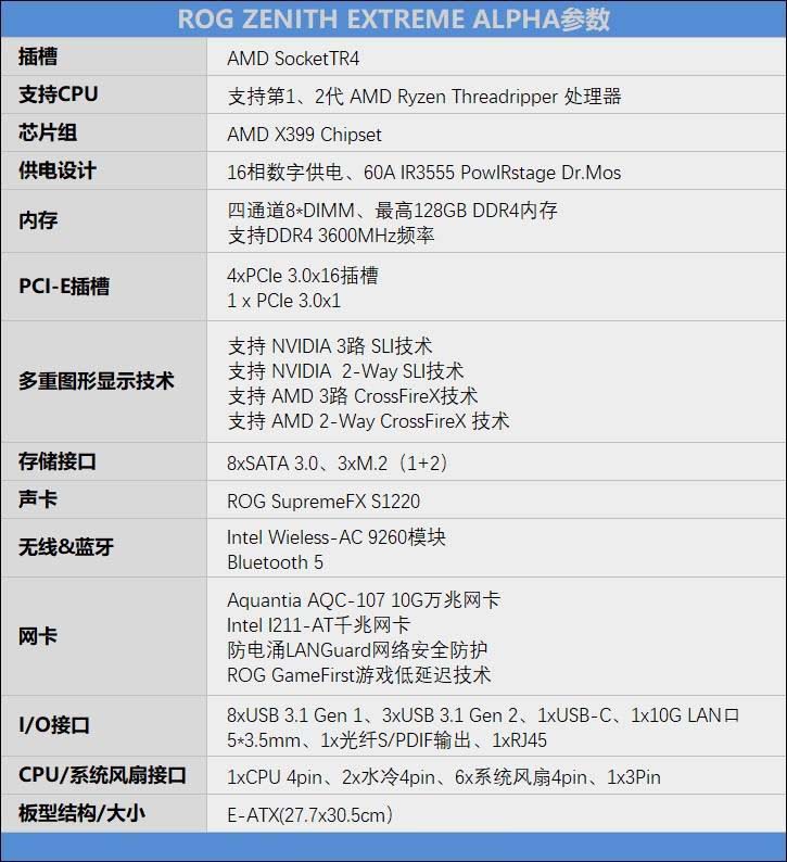 ROG Zenith Extreme Alpha參數(shù)如下: