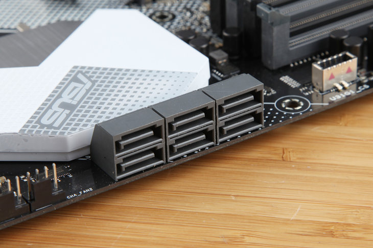 存儲擴展方面,除了兩個全速的PCI-E X4的M.2接口之外,還擁有6枚SATA3.0接口,可以支持最高6Gbps的傳輸速度,當然也支持各種Raid陣列。