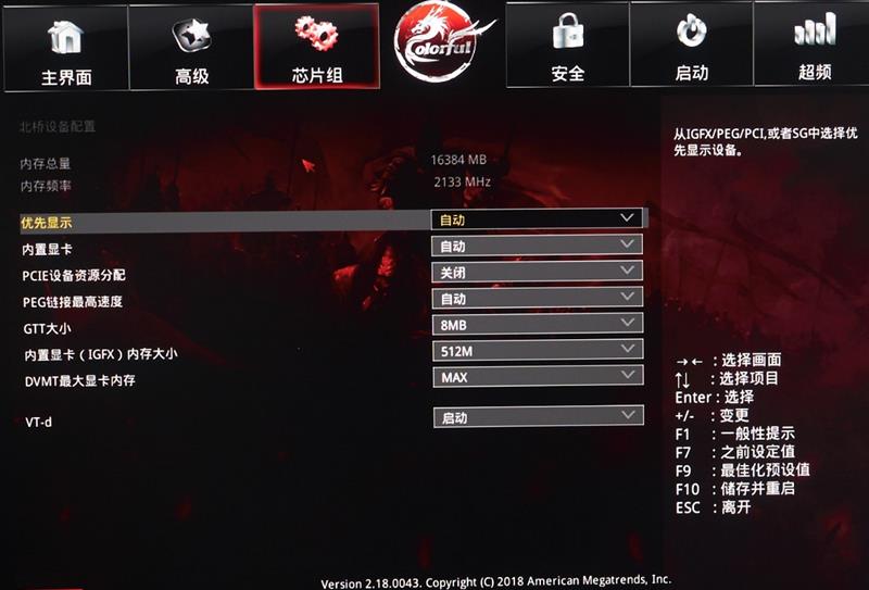 芯片組選項可以設置打開或者關閉核顯,以及設置核顯的共享顯存容量,也可以設置核顯獨顯同時輸出畫面。