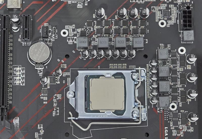 采用 LGA1151 CPU 插座,支持所有八代酷睿桌面端處理器。供電模塊安裝了2塊散熱片,可以有效的將供電電路的溫度控制在70度以下。