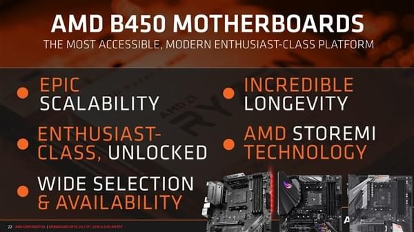 B450主板是繼X470之后,AMD 400系列家族的第二名成員,定位中低端市場,主板價(jià)格在千元以下,主要搭配銳龍5/3系列(當(dāng)然也能配銳龍7),但規(guī)格特性依然很高。和高端的X470一樣,B450經(jīng)過工藝和設(shè)計(jì)改進(jìn),功耗和發(fā)熱量更低,主板散熱片可以更簡單,同時(shí)改進(jìn)了處理器、內(nèi)存供電走線規(guī)范,并且同樣支持XFR2、PBO加速技術(shù),可以自動(dòng)根據(jù)負(fù)載提升處理器的運(yùn)行頻率。