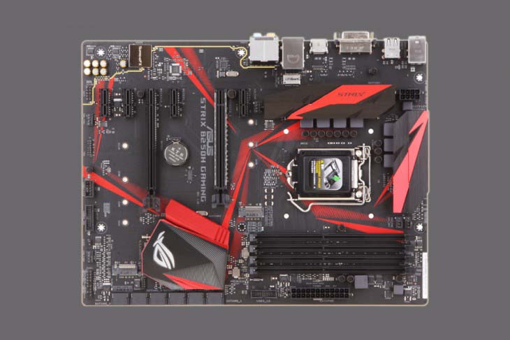 華碩ROG STRIX B250H GAMING是一款標準ATX規格的電競主板。與之前的ROG STRIX Z270系列產品不同,華碩ROG STRIX B250H GAMING回歸信仰電競紅黑配色。黑色PCB板和散熱片上的霹靂狀紅色幾何圖案,是ROG STRIXB250H GAMING“電競美學”的象征。