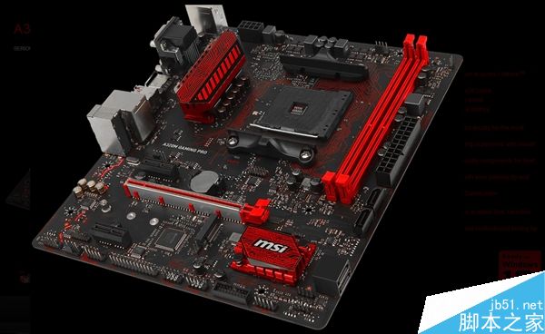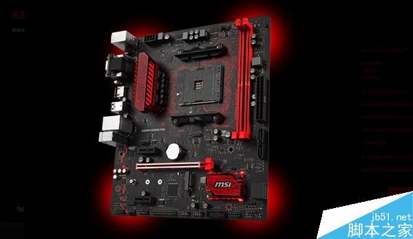 微星今天就發(fā)布了一塊“A320M Gaming Pro”,從這命名上就可以看出在努力拔高,事實上它也確實很上相:黑紅配色,供電電路、芯片組散熱片以及CPU插座附近的電路板上都有類似電路的紅色紋理,還都是RGB LED紅色信仰燈,另外DIMM內(nèi)存插槽、PCI-E x16擴展插槽也都做成了紅色。