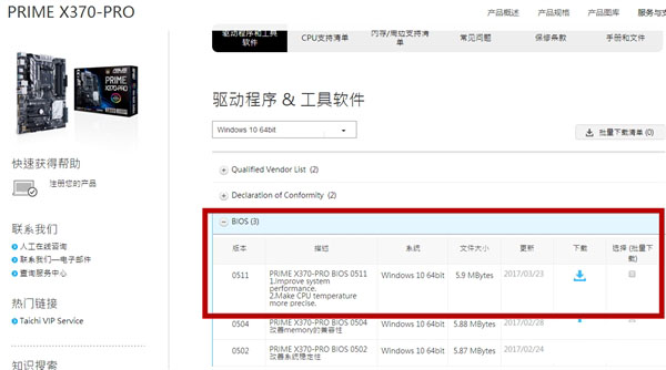 以華碩Prime X370-Pro主板為例,官方在昨天更新了0511新BIOS,一是改善了系統(tǒng)性能,二是CPU溫控更加準確。