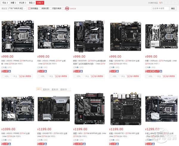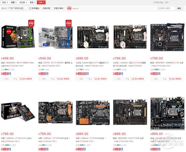在沒有決定你站在哪一個陣營的升級面前,性能又一樣的情況下,價格就是決定性因素了。我們篩選了2016年1月9日京東的報價頁面,來看看Z170與Z270的行情如何。