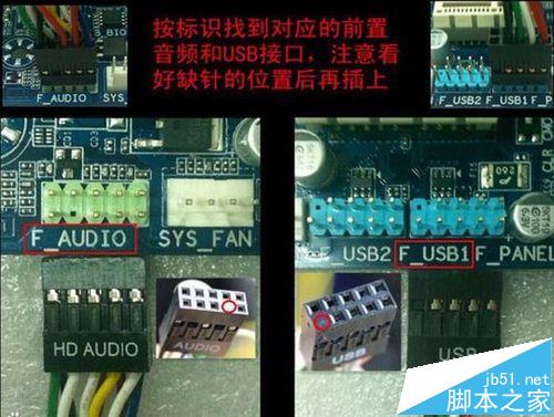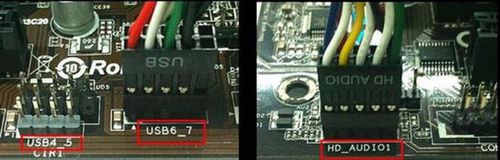 前置USB接口標識為 USB4_5/USB6_7 等,前置音頻接口標識為 HD_AUDIO1其它品牌的主板也基本大同小異,差不多的!
