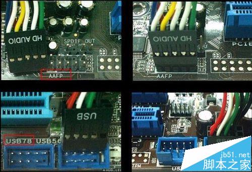 前置音頻標識為 AAFP,前置USB接口標識為 USB56/USB78 等