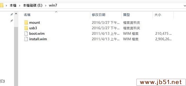 再把剛剛復制到硬盤的 boot.wim 及 install.wim 兩個映像檔放到 win7 文件夾里面。