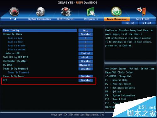 4、最下面的ERP,這個是省電的設置,出廠預設為關閉的,直接更改為Enabled(開啟),然后按F10保存退出就OK了。