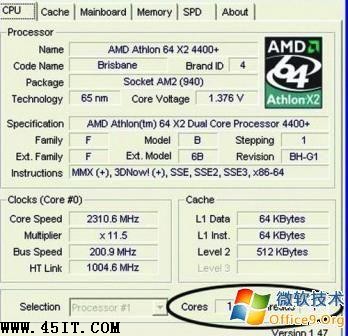●雙核的速龍4400+僅僅被識別成了單核處理器