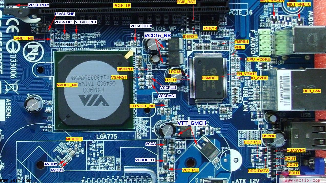 技嘉VM900M主板測試點實圖: