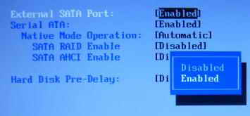 2、更改 External SATA Port 選項為 Disabled 即可。