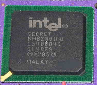 ICH8芯片上的第一行“intel”表示該南橋芯片是Intel公司的產品,第二行上“SECTRET”表示該芯片是一塊工程樣品,這里要特別說明一下,我們刻意選擇了這樣一個版本的ICH8來說明,原因就在于有時候你會看到類似的主板,他們并不是最終銷售的,所以不要因為騙宜幾十塊就選擇它。很多非正式版的芯片上都會有“SECTRET”字樣,所以要特別注意。而第三行上“NH82801HU”表示該芯片組是最新版本的ICH8R南橋芯片,而如果是相對較老的ICH8南橋芯片,編號則會是“NH82801HB”,第四行的“QL48ES”是該芯片的FPO序列號,這是Intel全球唯一的序列號,每塊芯片的序列號都不相同。最后一行的“MALAY”則表示芯片產自馬來西亞,“COSTA RICA”表示芯片芯片產自哥斯達黎加,“CHINA”表示芯片產自中國。