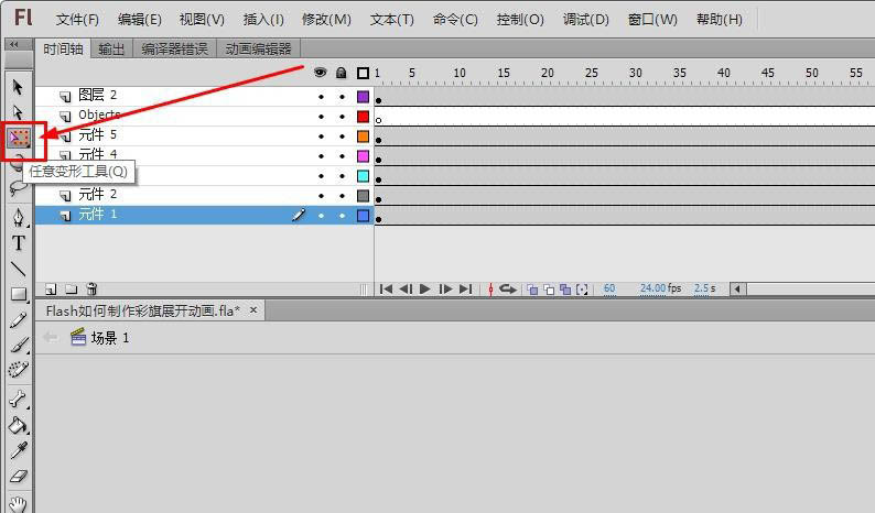 5、選擇圖形元件,注意每個(gè)彩旗都是單獨(dú)的元件