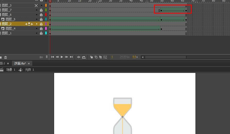 3、轉(zhuǎn)換為圖形元件,雙擊進(jìn)入編輯狀態(tài)。如圖所示,將沙漏先拆成兩個(gè)部分,外框和玻璃,分別放到最上層和最下層。