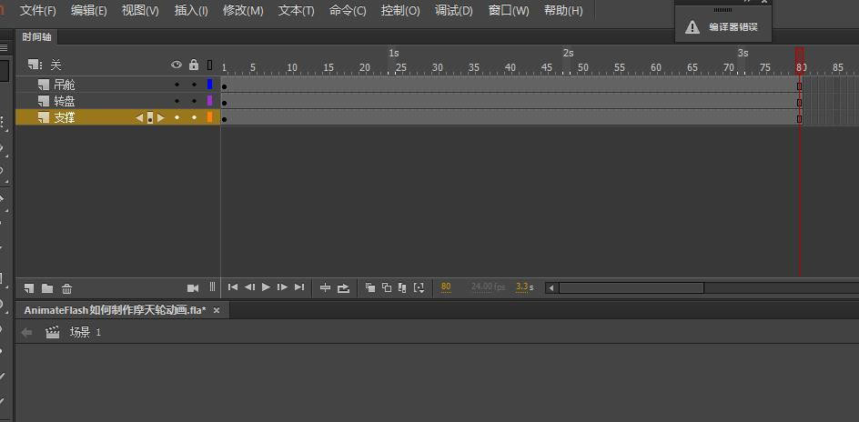 2、延長時間軸到80幀,也就是讓轉盤以80幀一圈的速度進行轉動