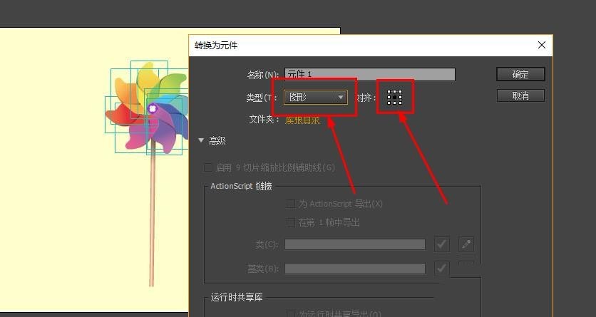 5、注意類型要選擇圖形元件,注冊點在中心位置
