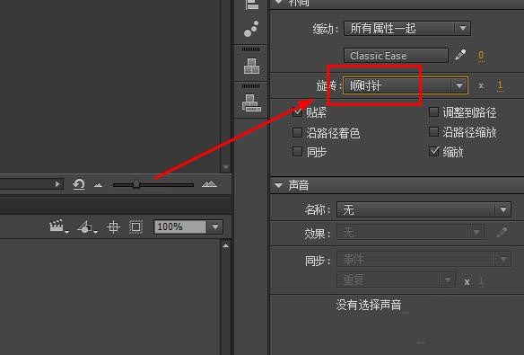 9、點擊補間幀,在屬性面板設置旋轉(zhuǎn)