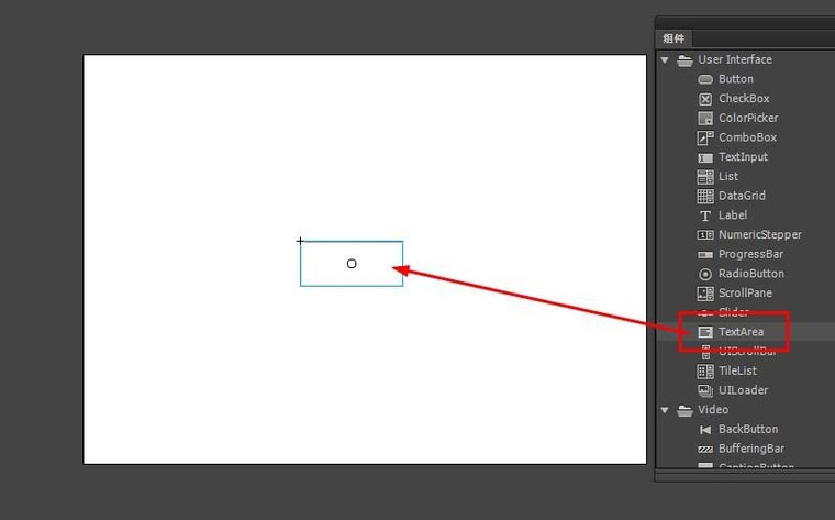 2、打開組件面板(快捷鍵ctrl+f7),找到TextArea組件并拖動到舞臺上