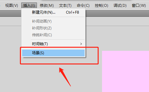 4、如果想要在創建新的場景,我們可以點擊展開“插入”菜單欄,選擇插入場景。