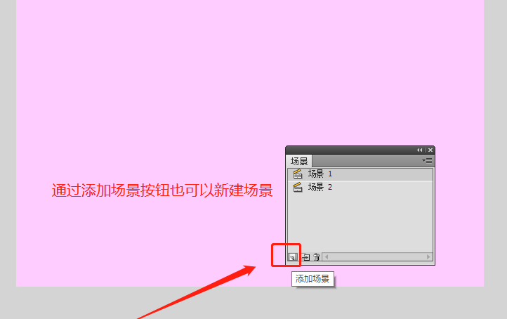 6、打開場景面板之后,我們在場景面板的左下角可以找到一個“添加場景”的按鈕,通過它也可以來添加多的場景。