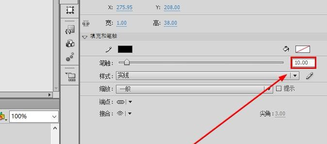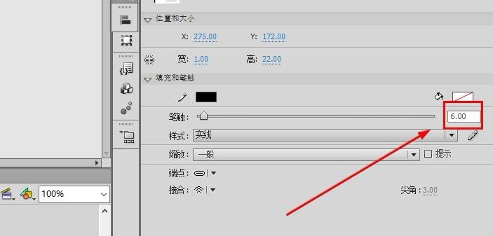 7、在舞臺繪制一個線段并調整位置與圓形對齊