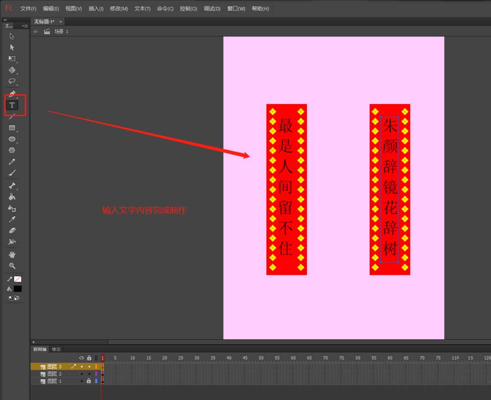 flash中想要制作一個純堿常見的對聯,該怎么制作對聯呢?下面我們就來看看詳細的教程。
