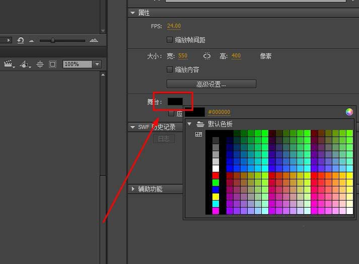 3、為了讓閃光明顯,我們把舞臺顏色調整為黑色